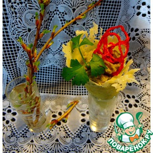 Или в маленький стаканчик, чтобы его удобно было брать и есть вместе с сырным конусом. |