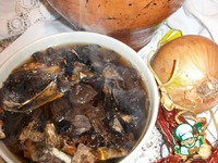 Пока варится фасоль - замачиваем грибы, зашпарим их кипятком и оставим. Пусть размокнут. Запах по кухне - очуметь просто. |