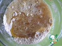 Сделать две лунки. В одну вылить сок половины лимона, ванильный экстракт. В другую - растительное масло. Сверху вылить остывший чай. |