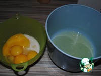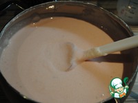 Когда оно начнет парить, постоянно помшивая, вводим желтки с сахаром. Продолжаем нагревать эту смесь, непрерывно мешая. Смесь должна загустеть как 1% кефир. Убираем с плиты. Не кипятить! |