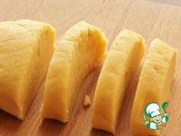 Отдохнувшее тесто нарезать пластинами примерно по 1см. |