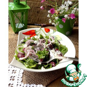Описание: Сытный, вкусный салат. Готовится быстро, из расчета, что фасоль готова заранее.