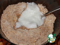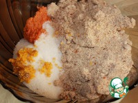 Смешать миндальную муку, сахар, пасту из цукат, апельсиновую цедру, мед. Добавить оливковое масло холодного отжима. |