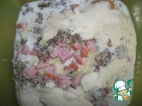 Следом муку с перетертыми в ней дрожжами. Замешиваем тесто, даем ему подойти |