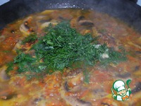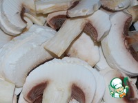 Затем добавляем к ним шампиньоны, порезанные кусочками. И жарим еще минут 5-7. |