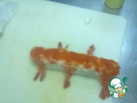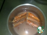 Отварные креветки в имбирном соке: тигровые креветки разморозить и одеть на шпажки вдоль спинки. Ставим воду на плиту, солим, кладем перец душистый, лавровый лист, укроп и остатки от лимона. Берём имбирь, выливаем сок из имбиря в кастрюлю, доводим до кипения и снимаем, кладём сюда отварные креветки и остужаем.