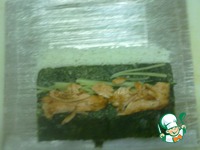 Готовый рис (только горячий) выкладываем в глубокий сосуд и вливаем 300г. мицукана, всё хорошо вымешиваем и накрываем влажным (холодным) полотенцем. Даём рису постоять минут двадцать и затем снова перемешиваем и также накрываем полотенцем и оставляем до тёплого состояния.