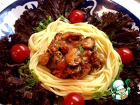 В это время отварить спагетти согласно инструкции. Всё, можно подавать на стол! Аромат стоит потрясающий, особенно для тех, кто не ел морепродукты весь пост!!! |