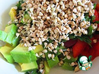 Добавить петрушку и проростки зеленой гречки к перцу с авокадо. Добавить сок лимона и оливковое масло. И соль, конечно, кому требуется. Перемешать, украсить по желанию. |