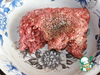 Бараний фарш вымешиваем с солью, свежемолотым перцем и сливками |