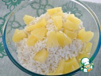 Рис отварю почти до готовности и промою. Нарежу половину ананасов и смешаю с рисом. |