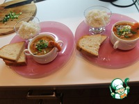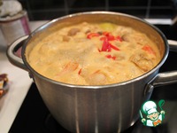 Нарезаем вымытые шампиньоны произвольно, помидоры - не очень крупно, имбирь покрупнее (чтобы его было хорошо заметно и его не съели:)), чистим креветки (у двух штучек оставляем хвостики для украшения). Лайм (пока один, второй нам понадобится для того, чтобы гармонизировать вкус) нарезаем на две или четыре части, чтобы удобно было выдавить сок. Открываем кокосовое молоко (вверху оно твердое, внизу у него жидкость, его надо в банке перемешать вилочкой). Моем наш морской коктейль. Том Ям готовится без риса, но мы с мужем давно решили, что рис сюда отлично подходит. Я подаю его отдельно, каждый насыпает сколько ему хочется. Так что на этом этапе я уже ставлю кастрюльку с водой для закипания под рис, воду и сам рис не подсаливаю. |