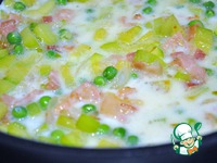 Добавляю кабачки, жарю 4 минуты и кладу горошек, лимонный сок, жарю ещё немного. |