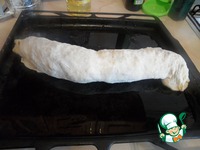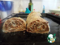 При помощи полотенца свернуть в рулет. Аккуратно переложить рулет на противень. |