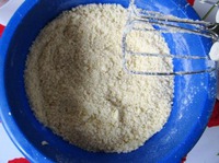 Миксером смешать масло с сахаром и мукой до получения мелких крошек. |