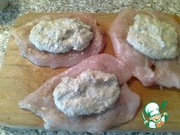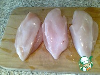 Разрезаем каждую грудку не до конца, раскрываем как книжечку, слегка отбиваем. Перчим, солим. |