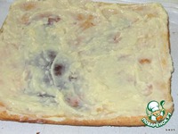 Тесто раскатайте в пласт толщиной 3 мм, выложите на противни, смоченные холодной водой. Сделайте несколько проколов и выпекайте 10 минут при 180 °С. Я это сделала заранее. |