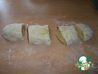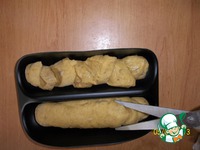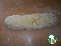 После второго звукового сигнала, выньте тесто и сформируйте не большую колбаску. |
