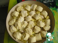 И нарезаем наши штрудели. Так же поступаем со второй половиной нашего теста и даем штруделям отдохнуть на посыпанной мукой поверхности |