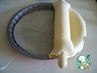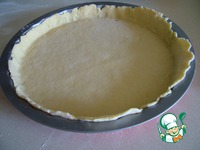 Охлажденное тесто раскатайте по размеру формы + бортики с небольшим запасом. Перенесите в форму с помощью скалки. |