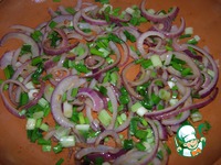 Лук поджарьте до золотистого цвета на сливочном масле. Можно добавить еще немного зеленого лука в конце. |