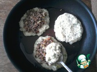 | 5. Если нужен не постный вариант, то можно сделать, как я: обжарить курочку и добавить в начинку нужного количества драников. |