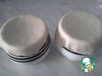 Тесто раскатываем в лепёшки по диаметру немного больше, чем горлышко горшочков. Накрываем горшочки. |