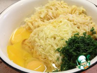 Картофель почистить, натереть на крупной терке. Добавить яйца, измельченную зелень укропа. |