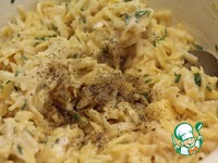 Все перемешать. Если картофельная масса немного постоит и "пустит сок", то его необходимо слить, массу отжать. |