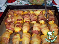 Описание: Тут уже были рецепты картошки в беконе, но мой немного отличается. Думаю, никого не обижу, поделившись своим вариантом. Сфотографировать успела только на листе - расхватали, а на тарелке у гостей фотографировать, согласитесь, неудобно как-то.