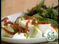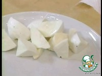 на сыр натереть цедру с лимона, положить сверху кусочки перчика, чтобы каждый получил свою дозу, и листья салата |