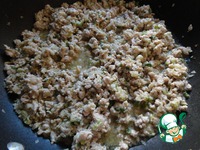 Добавляем фарш. Хорошенько перемешиваем, чтобы не было комков. Слегка поджариваем. |