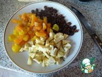 Строгаем сухофрукты. За это время как раз хлопья чуть пропитаются бананом (особенно если он спелый) |
