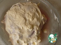 Достаем и мажем ее сметаной, снова под пленку и на 6 часов в холодильник. |