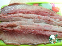 Сельдь выпотрошить, снять кожу, отделить филе от костей и постараться удалить все мелкие косточки |