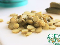 Огурчики порезать кружками (если маленькие) или, в зависимости от их размера, на небольшие кусочки. Сколько - опять же дело вкуса. |