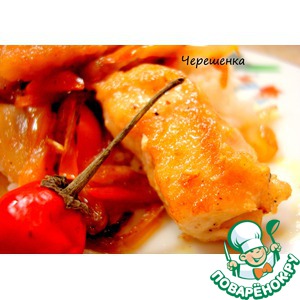 Обжарить на растительном масле кусочки курицы порциями до золотистой корочки… |