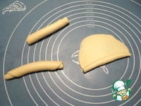 Затем трубочку аккуратно раскатываю в жгут. Раскатывать нужно постепенно, т. к. если Вы будете сильно тянуть, при выпечке тесто может в некоторых местах порваться. |