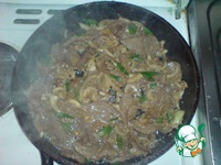 Добавить маринад к мясу и тушить под крышкой на среднем огне 15-20 минут. |