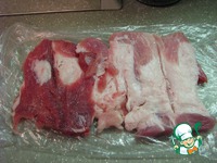 Берем подчеревок свиньи (брюшная часть), снимаем шкурку. Разрезаем кусок вдоль, не доходя до края, и раскрываем как книгу. |
