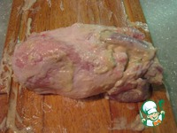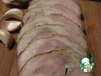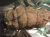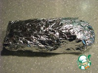 Заворачиваем в три слоя фольги и отправляем в аэрогриль (духовку) при температуре 205 градусов на 1 час 20 минут. По прошествии времени фольгу разворачиваем и даем рулету немного зарумяниться. |