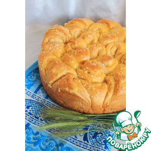 Оставляем подходить на 40 минут. Смешать молоко с желтком, смазать хлеб и посыпать кунжутом. Выпекать в разогретой духовке 15 минут при 200 градусах, затем 45 минут при 170 градусах. |