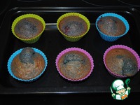 Разлила тесто по формочкам. Верхний ряд с домашним разрыхлителем, нижний с магазинным. |