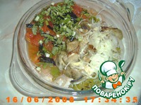 Запекаем хорошо, со всех сторон баклажаны, помидор, перцы. |