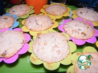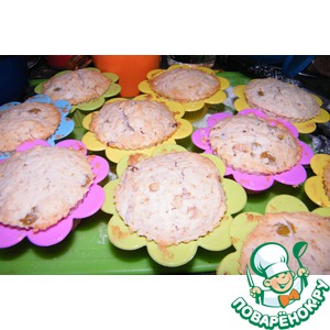 Добавить молотые орехи с изюмом, смешать с мукой и разрыхлителем. Выкладываем тесто в формочку. У меня силиконовые. Ставим в духовку на 25-30 мин при 180 гр. Вот такие они получаются. |