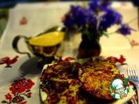 Сейчас нужно всё делать быстро: картошку натереть на крупной тёрке, посолить и отжать сок. Сразу положить в неё 2 ст. л. сметаны и перемешать. Сметану кладут главным образом для того, чтобы картошка не потемнела. Вот теперь можно расслабиться и, не торопясь, сделать всё остальное. Положить в картошку два сырых яйца, порезанный мелко укроп и отварную рыбу и две ст. л. муки. Всё перемешать в однородную массу, попробовать и добавить, если нужно, соль и перец. Налить в сковороду растительное масло, раскалить его, и можно поджаривать наши драники. Кто любит порумянее, то подольше, кто заботится о своём здоровье, то немного поджарьте, но потом нужно будет потомить немного в духовке или микроволновке, потому как в середине они могут быть сырыми.