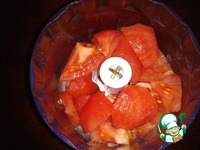 Затем помидоры измельчить блендером в однородную кашицу. |