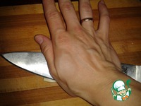 Ножом сверху раздавить чеснок. Я специально показала на фото, как это делать. |
