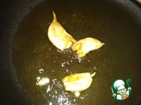 Затем на сковородку налить оливковое масло и обжарить чеснок с 2-х сторон, но не сильно (может отдавать горечью), а до золотистого цвета. Затем чеснок аккуратно убрать из сковороды. |
