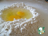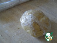 Вымесить крутое тесто, обернуть пищевой пленкой и убрать в холодильник. |